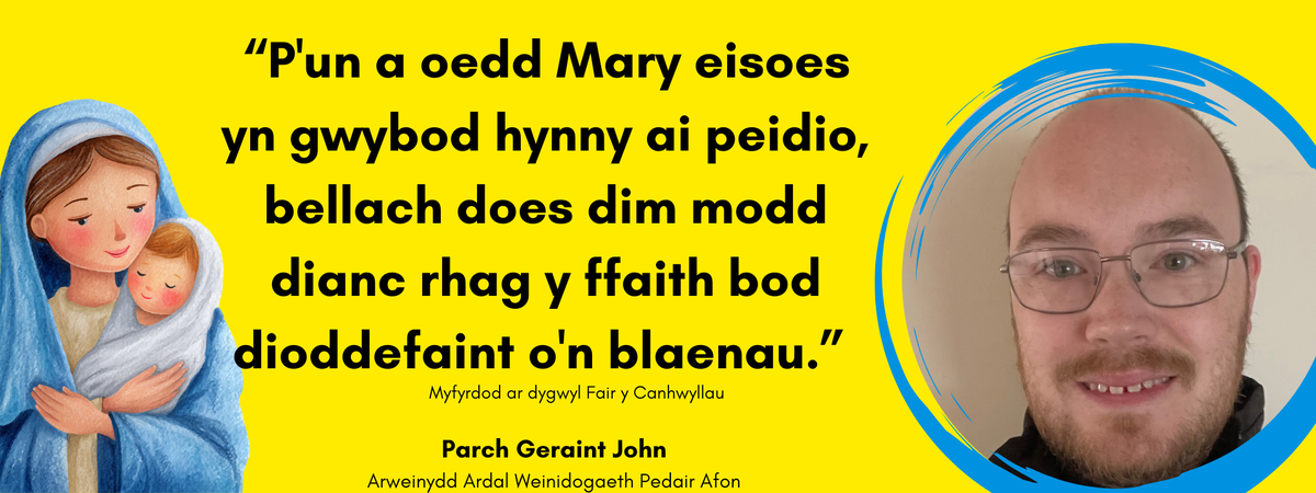 “P'un a oedd Mary eisoes yn gwybod hynny ai peidio, bellach does dim modd dianc rhag y ffaith bod dioddefaint o'n blaenau.”