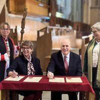 On Sunday at Llandaff Cathedral, Bishop Mary, Michael Lawley (Chair of the Llandaff Diocesan Board of Finance), Eva Christina Nilsson (Upsalla Diocesan Director) and Kerstin Eskhult (a Member of the Upsalla Diocesan Assembly) signed a new Partnership Agreement, renewing our commitment to walk together for the next five years.