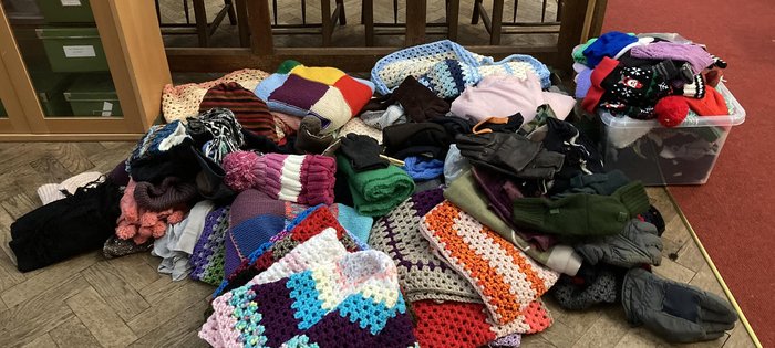 Ely Church makes 100 warm boxes, filled with handmade blankets, hats, scarves and gloves in partnership with local action group as the community fights against heating poverty in the cost-of-living crisis.